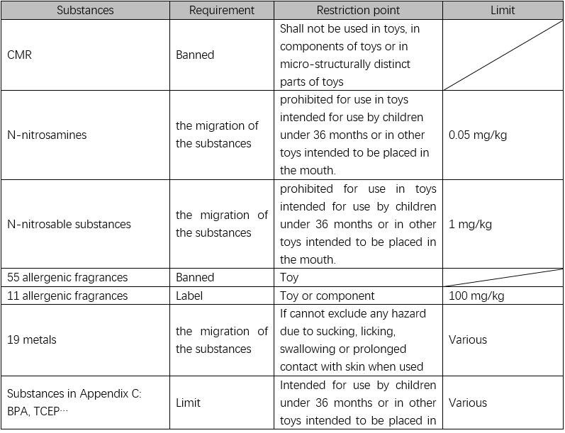 新的TSD在監管范圍,玩具定義,運營商責任,合格評定,CE標簽,警告和安全要求方面對88/378 / EEC進行了修訂和補充。它提出了更嚴格的要求,特別是化學要求。例如,遷移的極限范圍已從8種金屬擴大到19種金屬,不同的極限值適用于不同的材料類型或使用條件的差異。將玩具出口到歐盟地區對該行業來說變得越來越具有挑戰性。